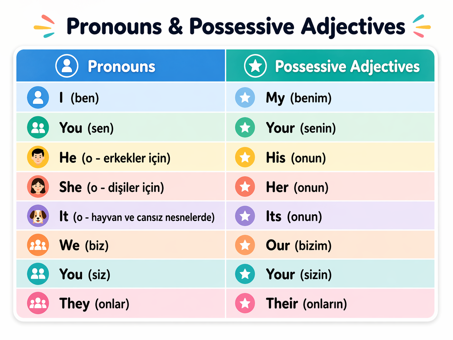 <title>İyelik Sıfatları -Posessive Adjectives - ONLINE İNGİLİZCE / A1 BAŞLANGIÇ(STARTER) / Unit 1 / Lesson 2 / Grammar Focus   / </title>